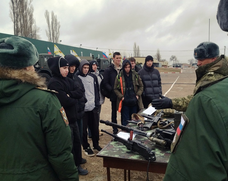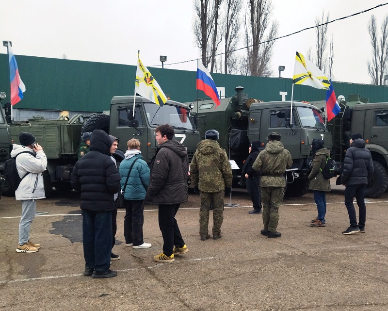Будущих военных специалистов ознакомили с комнатой Боевой Славы части, показали парк боевой техники, где им были показаны образцы основной колесной автомобильной и бронетехники состоящей на вооружении в Сухопутных войсках Вооруженных сил Российской Федерации.